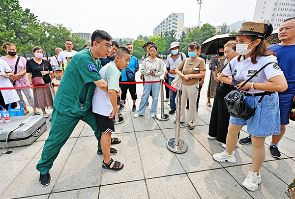 为有效提升山城百姓的急救知识和技能,提高应对突发事件的自救互救能力,义诊现场还设立了急救技能演示区域,由曾获“第三届全国健康传播金牌讲师大赛北部赛区16强”殊荣、现任辽宁省医学会急诊医学分会青年委员的急诊科郝庭峰医生,围绕心肺复苏、海姆立克等急救知识进行专业讲解和实操培训,吸引许多市民围观学习,并积极参与互动环节。