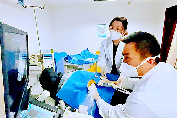 到了医院,见到了备受疾病折磨消瘦的大爷,他流着泪说:“孩子呀,谢谢你们,还特意为我来单位一趟,我实在太难受了……”我说:“大爷,别激动呀!咱下完管,慢慢放水,就能好受多了。”术前和家属沟通时才得知,大爷在节前因凝血功能障碍,血小板过低,所以一直未进行穿刺置管。