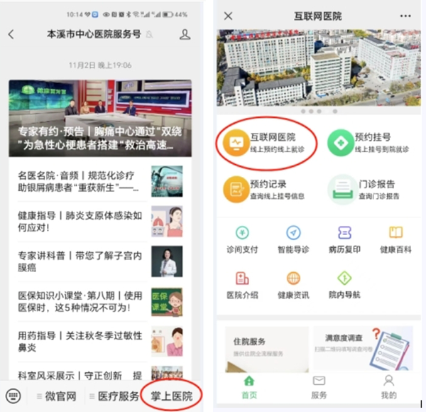 进入bwin唯一官方网站必应微信公众号或者医院APP首页,点击互联网医院。