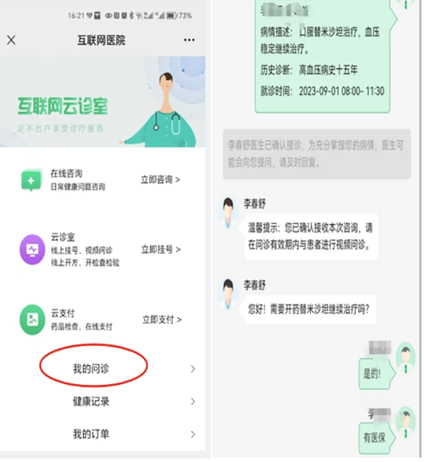 成功预约后,点击我的问诊,即可开始问诊、开单。
