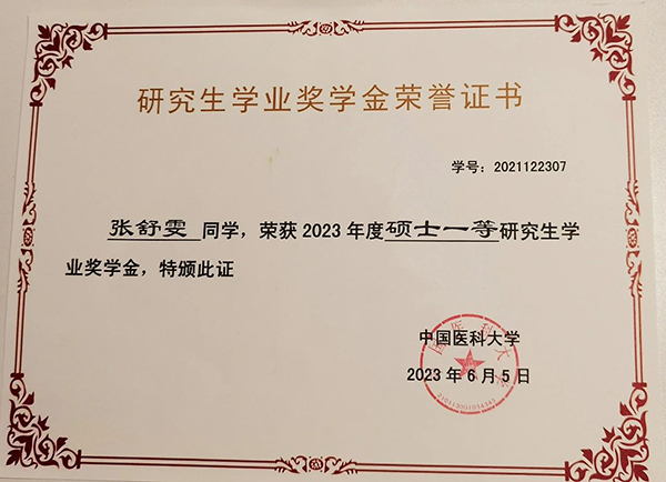近日,在中国医科大学开展的优秀研究生评选中,曾获中国医科大学研究生学业奖学金一等奖的张舒雯,凭借扎实的理论基础、住院医师的岗位胜任力及显著的科研成果,在科学研究与创新实践等活动中表现优异,从众多优秀研究生中脱颖而出,喜获“中国医科大学优秀研究生”称号。