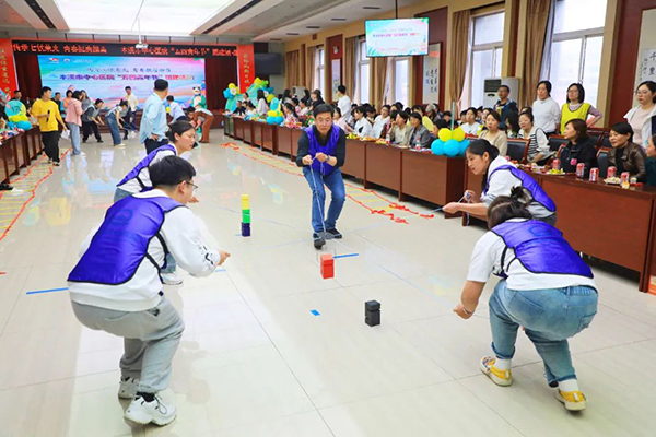 全体人员共分为六支参赛队伍,现场设置了一圈到底、急速四子棋、合力搭建、狭路相逢勇者胜等游戏竞赛。赛场上,各代表队队员们充分发扬“五四”精神,齐心协力、团结一致,共同完成每一项比赛,用实际行动展示了中心人精诚团结、奋勇争先的良好精神风貌。参赛队员个个精神抖擞,观看群众热情高涨,加油声此起彼伏,整个活动现场气氛热烈、洋溢着欢声笑语。每一个项目的完成,都是队员们默契配合的完美呈现,每一次成绩的取得,都凝聚了团队的智慧和力量。