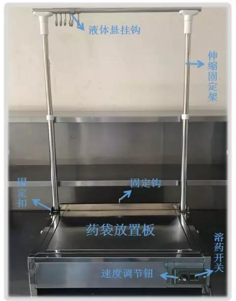 该溶药装置有效解决了多种药液悬挂的问题,降低了因加药、更换药液时牵拉造成连接管脱落导致感染的发生率,自动溶药更好地将药液完全溶解,减少了护理工作强度,降低了护士职业负损伤的风险。伸缩固定架还可以调节高度,便于不同身高护士操作,加药后可以折叠,便于收藏,节省空间。