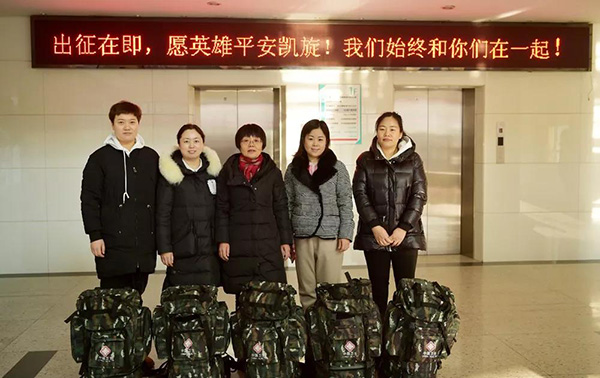 1月25日大年初一,当我院接到辽宁省卫健委发出的组派首批辽宁医疗队援助湖北应对新型冠状病毒感染的肺炎疫情的号召后,医务人员积极踊跃请战,仅用半天时间就将人员、医疗物资等迅速集结到位。我院5名医疗队员由来自干诊三病房李珉主任系呼吸科专家,重症监护病房护士长王洪波、急诊抢救室护士长高荣、呼吸内科护士许志荣和重症监护病房护士侯秋阳组成,她们主动请缨、义无反顾,自愿加入抗击疫情队伍,参与到这场没有硝烟的战斗中,彰显了“巾帼不让须眉”的精神风貌。