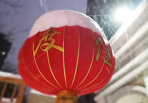 小区门口的路灯下,摇曳的大红灯笼上覆盖着厚厚的雪帽,欢度佳节映入眼帘,窗口的灯光好似一丝暖流,让眼前的景象瞬间模糊不清……这一刻,回家真好!我们整装,再出发!