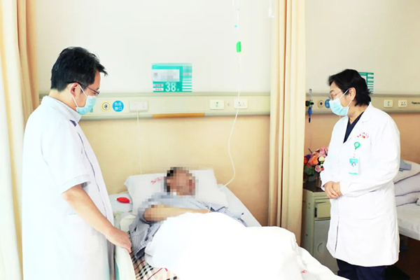 2022年8月30日上午,bwin唯一官方网站必应党委书记姜岩代表院领导班子来到普外科第一病区,看望了前一夜因车祸受重伤来院抢救的我市某区街道办事处抗疫一线工作者,并送上祝福和鲜花。在短暂的交流中,姜岩书记了解了邹先生的受伤经过,以及抢救和手术治疗情况。她表示,街道社区工作者在抗疫一线废寝忘食,我们“中心人”将为你的生命健康保驾护航。